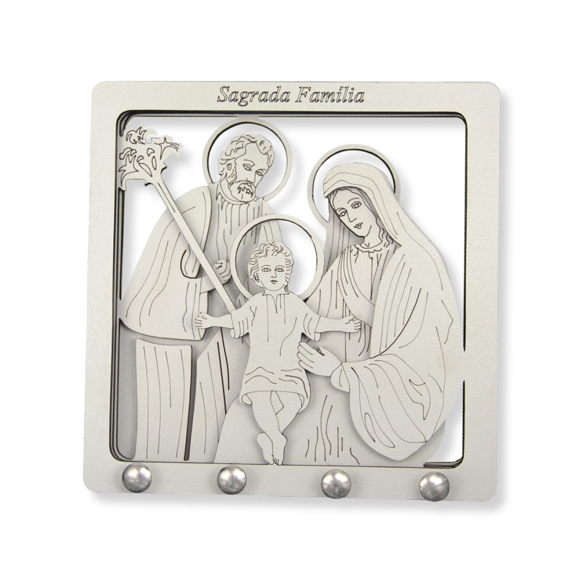 PC381100 - Porta Chaves Sagrada Família MDF Branco - 14,7x14,7cm
