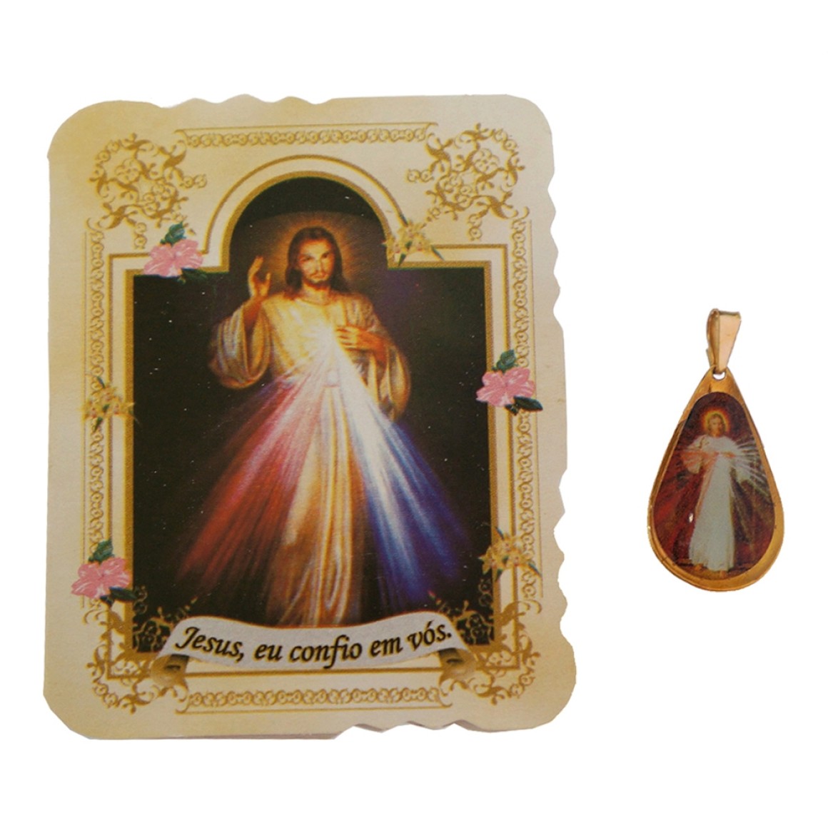 *Cartão Jesus eu Confio em Vós c/ Medalha - 7,5x6cm.