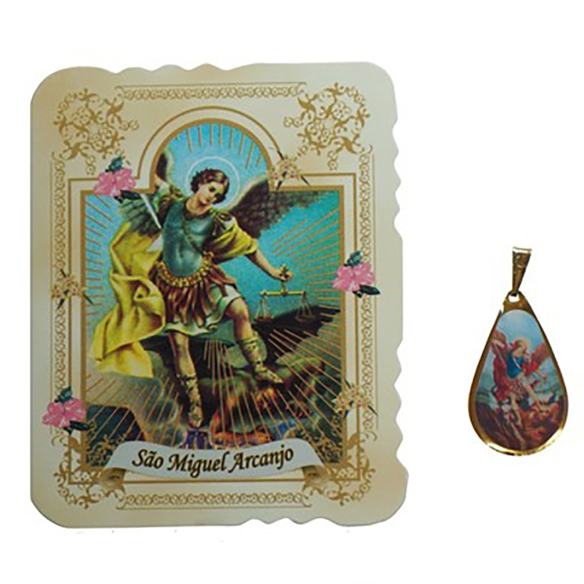 CM41804 - Cartão São Miguel Arcanjo c/ Medalha -7,5x6cm