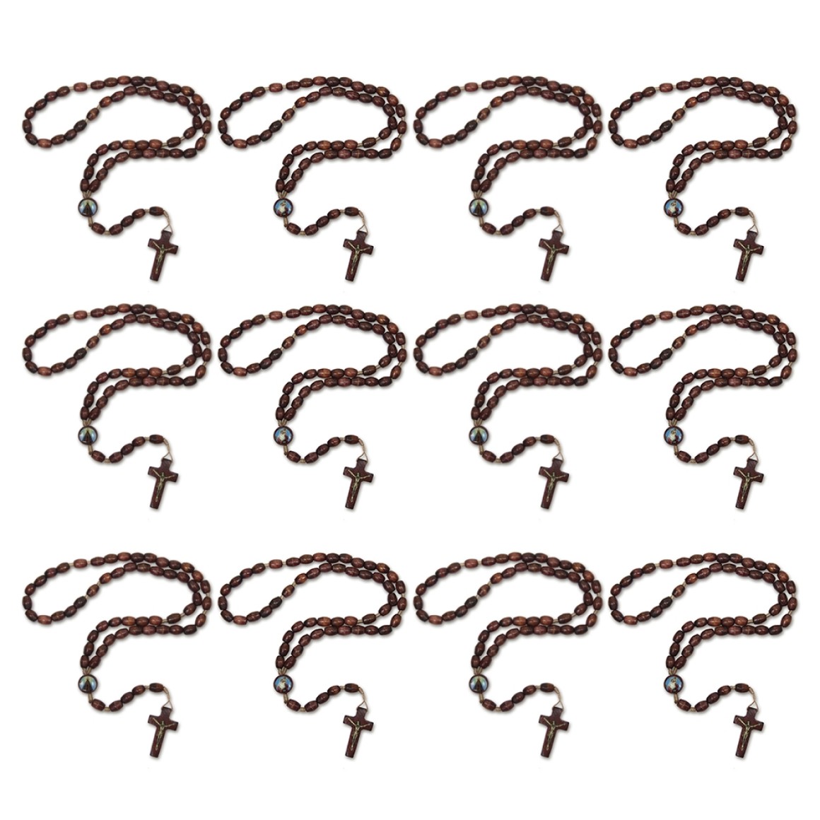 2. TE942004P12 - Terço N. Sra. Aparecida e São Cristovão Madeira c/ 12un. - 41cm