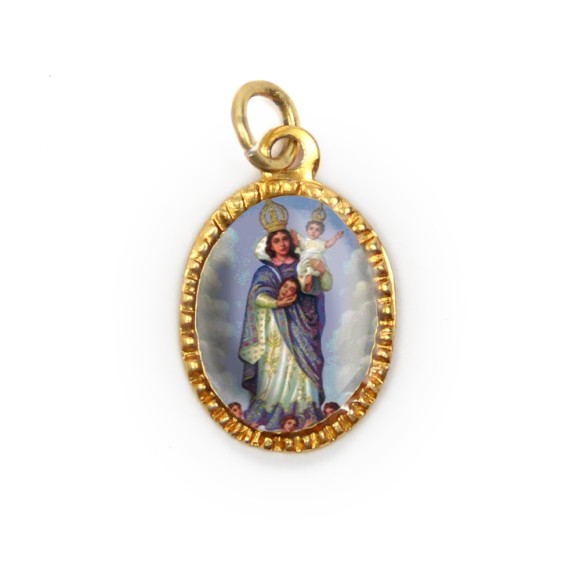 *Medalha de Alumínio Oval Dourada c/ 10un. N. Sra. Da Cabeça - 2x1,3cm.