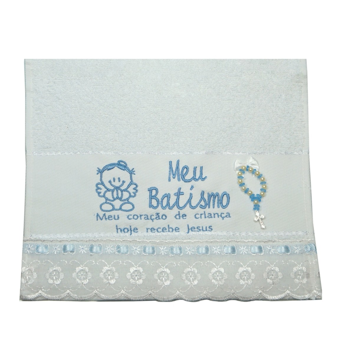 TO1421 - Toalha Batismo Azul c/ Dezena - 45x31cm