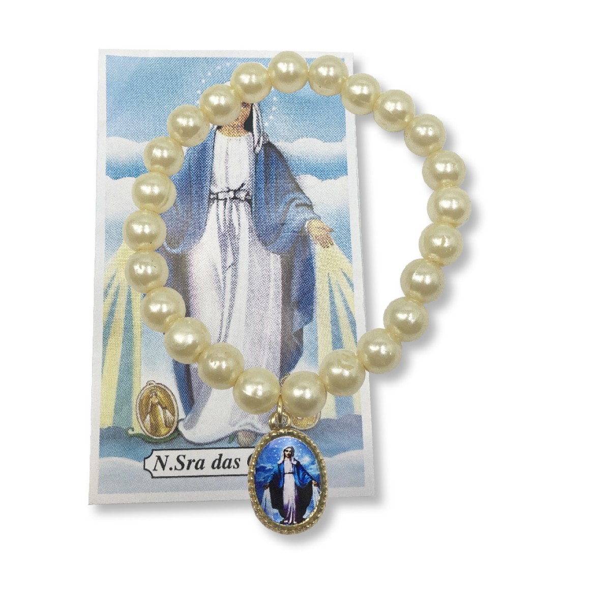 *Pulseira N. Sra. das Graças Pérola Bege - 11x2cm.
