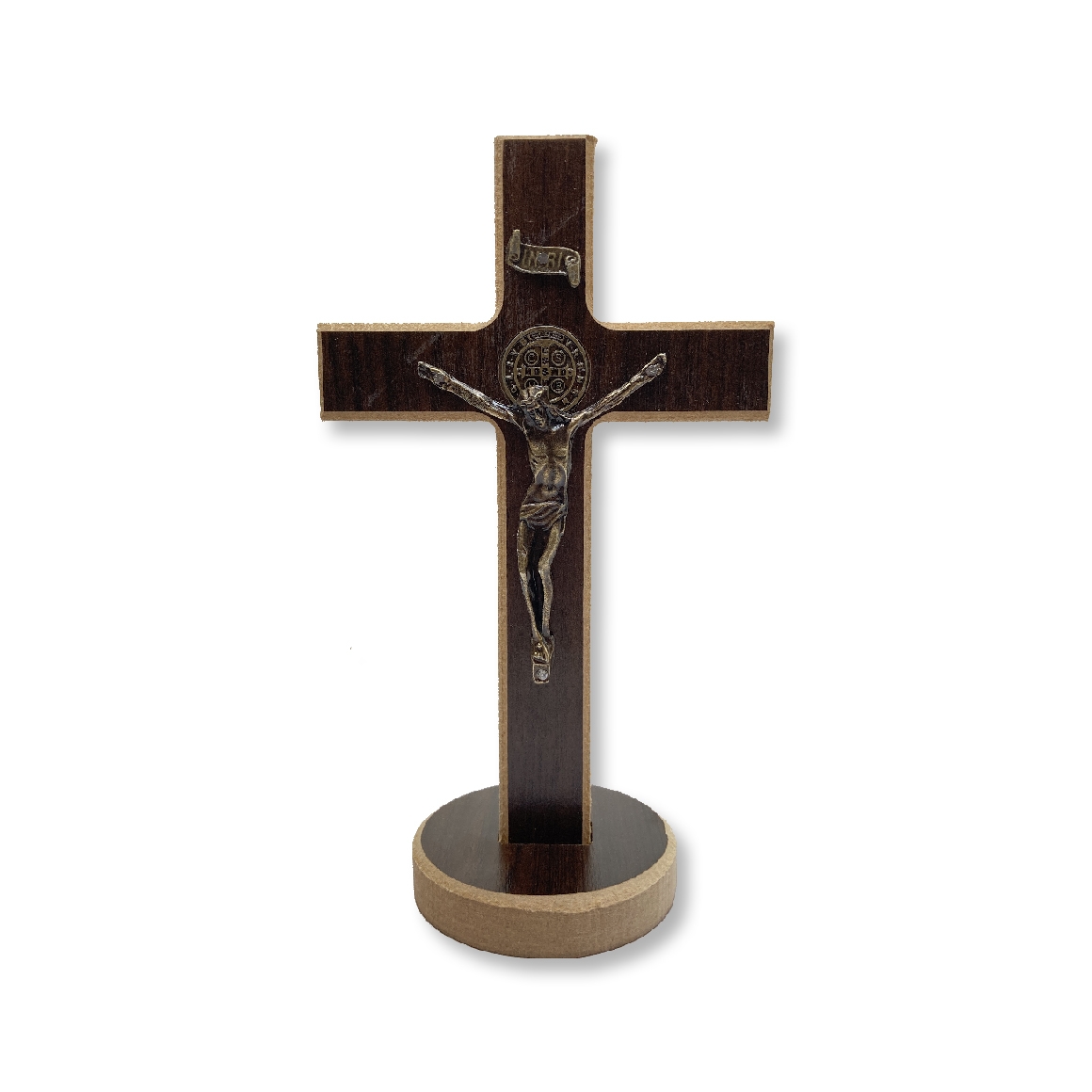 *Crucifixo de Mesa São Bento Madeira - 20x11,4cm.