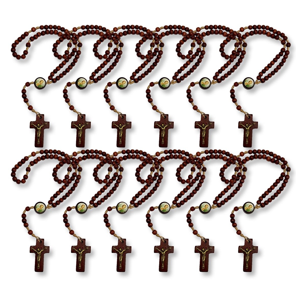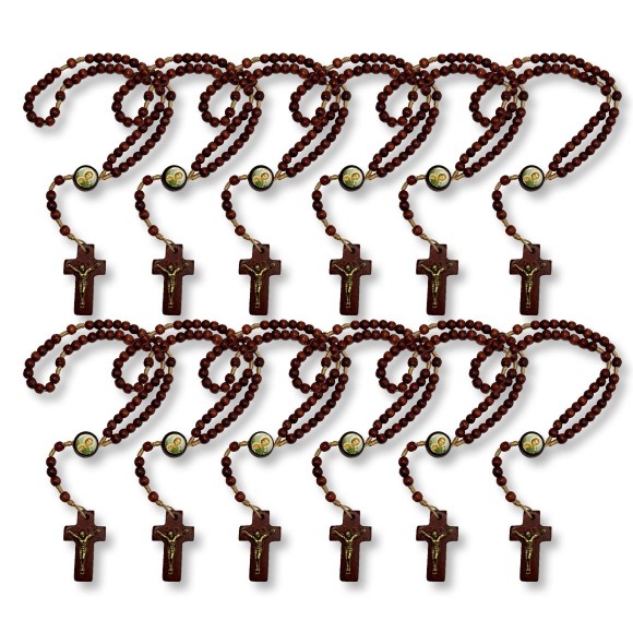 TE941404P12 - Terço São José Madeira c/ 12un. - 24cm