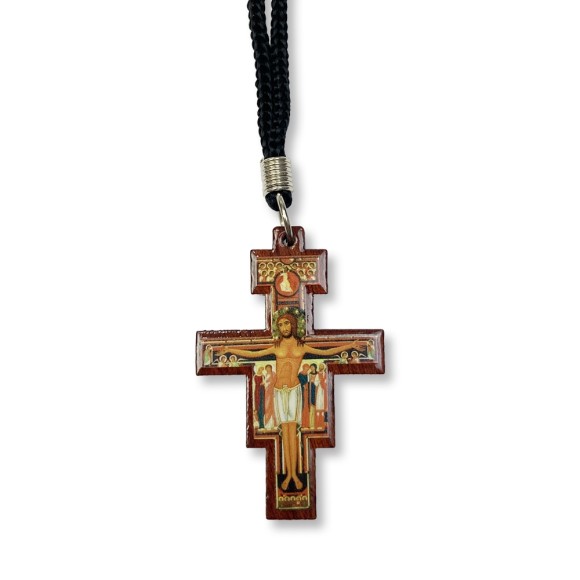 CC374200 - Cordão c/ Cruz de São Damião Madeira - 43,5cm