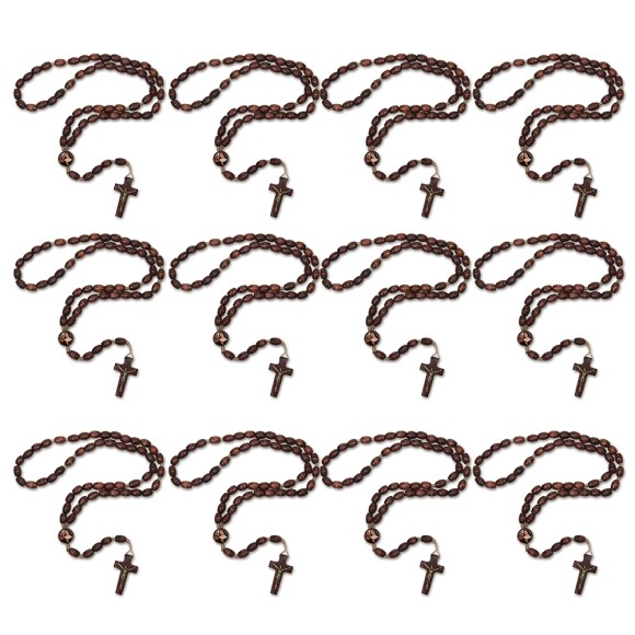 TE942040P12 - Terço Santa Rita de Cássia Madeira c/ 12un. - 45cm