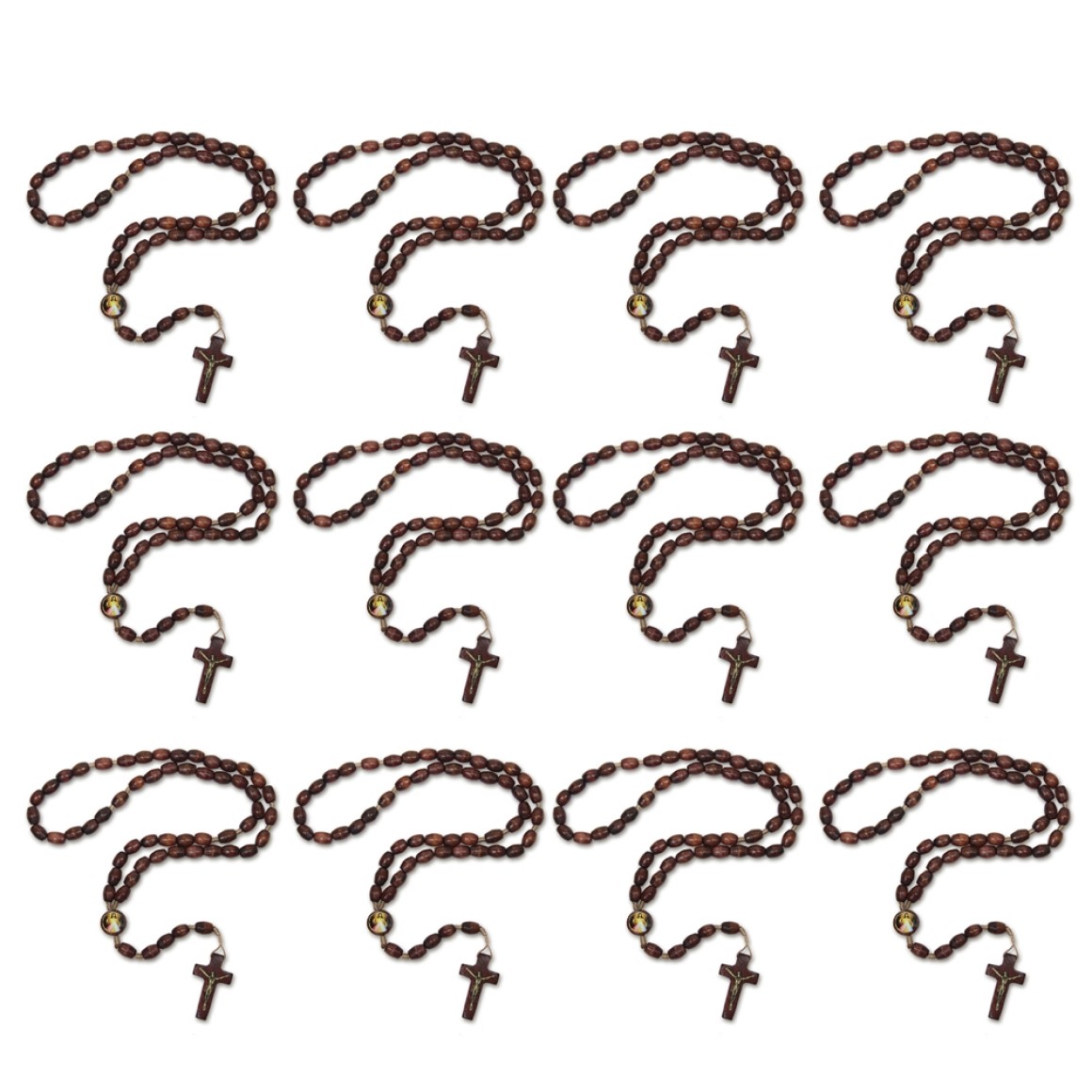 *Terço Jesus Misericordioso Madeira c/ 12un. - 45cm.