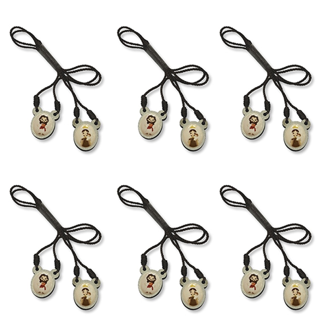 *Escapulário N. Sra. do Carmo e Sagrado Coração de Jesus Infantil Madeira c/ 6un.
