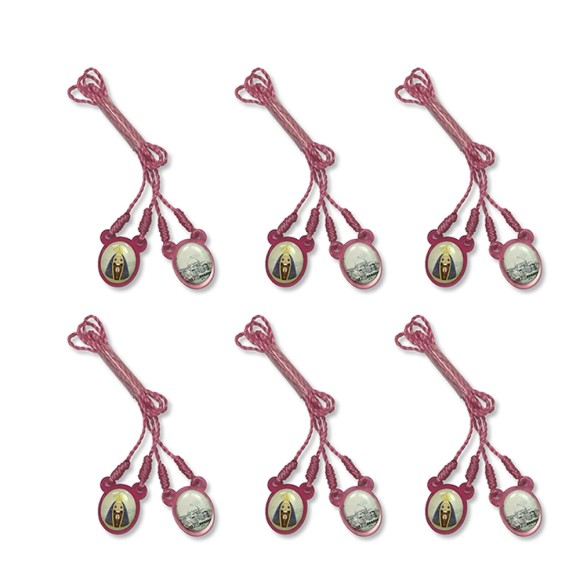 ES720100P6 - Escapulário N. Sra. Aparecida Infantil Acrílico Rosa c/ 6un. - 60x1,4cm